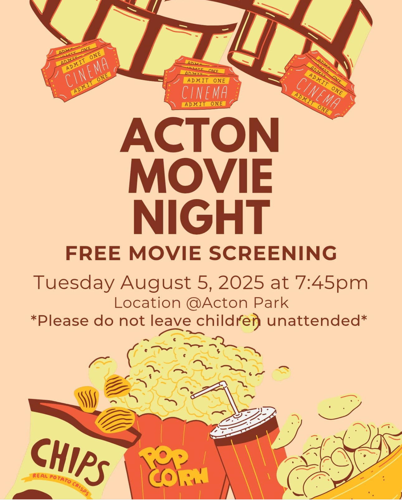 Acton Park 7:45pm, Free movie screening, Please do not leave children unattended. View Flyer