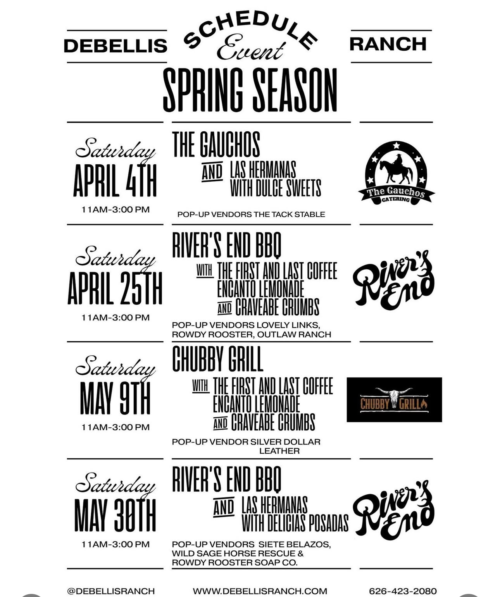 Debellis Ranch 32538 Aliso Canyon Rd, Acton, CA, United StatesDebellis Ranch - Schedule of events for the Spring Season, 11am - 3pm