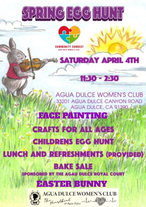 Agua Dulce Women's Club 33201 Agua Dulce Canyon Road, Agua Dulce, CA, United StatesAgua Dulce Women’s Club, 11:30 am – 2:30 pm, Bring the whole family and celebrate spring. Hosted by Community Connect & the Agua Dulce Women’s Club! Fun for the whole […]