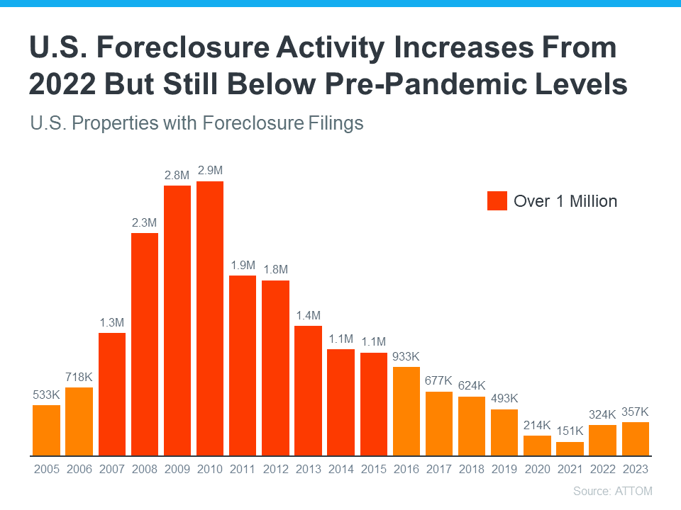 Even though the housing market is experiencing an expected rise in foreclosures, it’s nowhere near the crisis levels seen when the housing bubble burst. If you have questions about what you’re hearing or reading about the housing market, connect with a real estate agent.