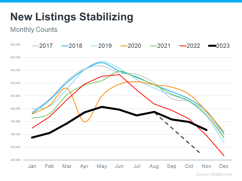 • For buyers, new listings stabilizing is a positive sign. It means you have a more steady stream of options coming onto the market and more choices for your next home than you would have at the same time last year. This opens up possibilities and allows you to explore a variety of homes that suit your needs.