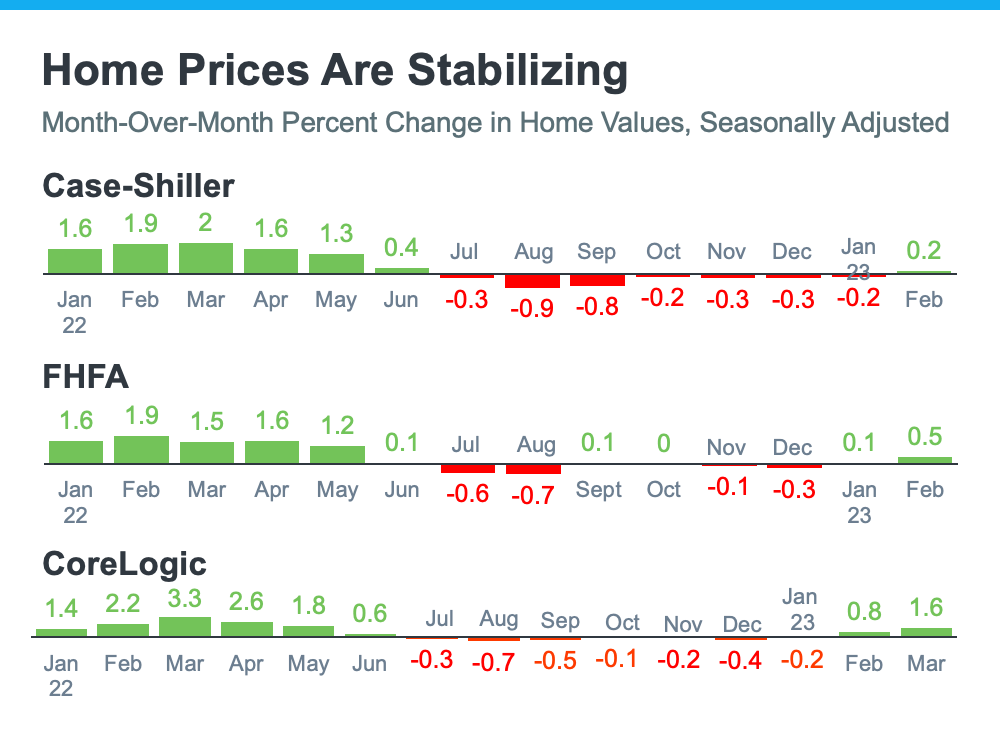 While one to two months doesn’t make a trend, the fact that all three reports show prices have stabilized is an encouraging sign for the housing market. The month-over-month data conveys a clear, but early, consensus that a national shift is taking place today. In essence, home prices are starting to tick back up.