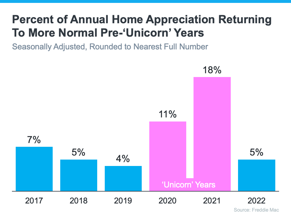 We can’t compare today’s home price increases to the last couple of years. According to Freddie Mac, 2020 and 2021 each had historic appreciation numbers. Here’s a graph also showing the more normal years (2017-2019):